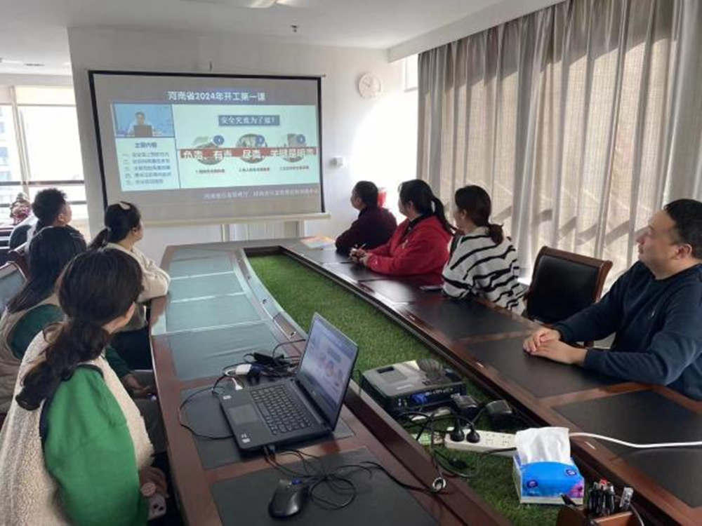 為認(rèn)真貫徹習(xí)近平總書記關(guān)于安全生產(chǎn)重要指示精神,全面落實(shí)黨中央、國(guó)務(wù)院和省委、省政府決策部署,切實(shí)做好春節(jié)后復(fù)工復(fù)產(chǎn)企業(yè)的安全生產(chǎn)工作,有效杜絕準(zhǔn)備不充分、員工精神狀態(tài)不佳、設(shè)備故障運(yùn)行、安全管理不到位等問題引發(fā)的生產(chǎn)安全事故,確保復(fù)工復(fù)產(chǎn)安全, 全面恢復(fù)現(xiàn)場(chǎng)施工,保證項(xiàng)目施工進(jìn)度,壓實(shí)項(xiàng)目、監(jiān)理、總分包管理責(zé)任。建投集團(tuán)2月28日上午按照省、市安委會(huì)及城發(fā)集團(tuán)統(tǒng)一要求,組織控股公司、項(xiàng)目部留守人員及施工、監(jiān)理單位共計(jì)129人統(tǒng)一收看“河南省 2024 年開工第一課講安全”專題講座直播和安全生產(chǎn)責(zé)任在肩安全生產(chǎn)警示教育片。