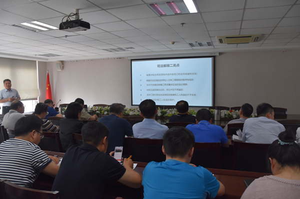 5月24日下午,根據集團公司2019年度普法培訓計劃要求,為大力宣傳學習新通過的《最高人民法院關于審理建設工程施工合同糾紛案件適用法律問題的解釋(二)》 (以下簡稱“解釋二”),集團公司在25樓會議室開展了《“建設工程施工合同法律適用”解讀暨職工普法工作專題會議》。集團公司60多名員工參加了本次培訓。