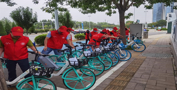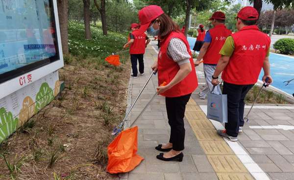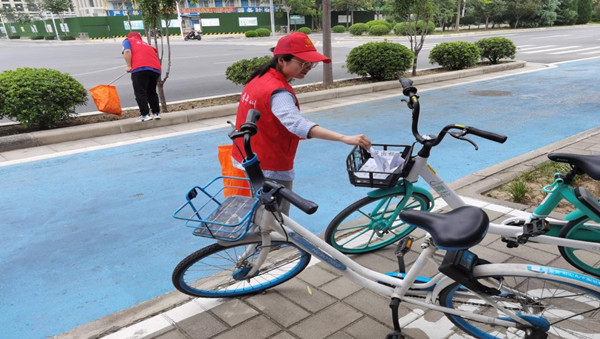 啟動儀式后,趙主任帶領志愿者們在博學路(金水東路-平安大道)路段兩側開展了“三撿”、擺放亂停放非機動車輛、清除小廣告、勸阻市民亂扔垃圾、隨地吐痰等不文明行為、向路過行人提供信息咨詢等“文明引導”志愿服務活動。一抹志愿紅映襯在道路兩側,形成了公共文明引導志愿服務行動強勁的影響力,使文明行為更加深入人心。