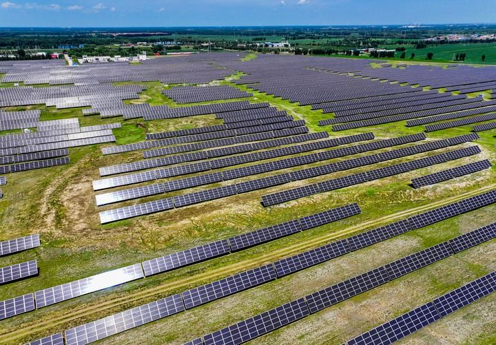 2024年7月19日拍攝的內蒙古通遼發電總廠光伏電站(無人機照片)。新華社記者 連振 攝